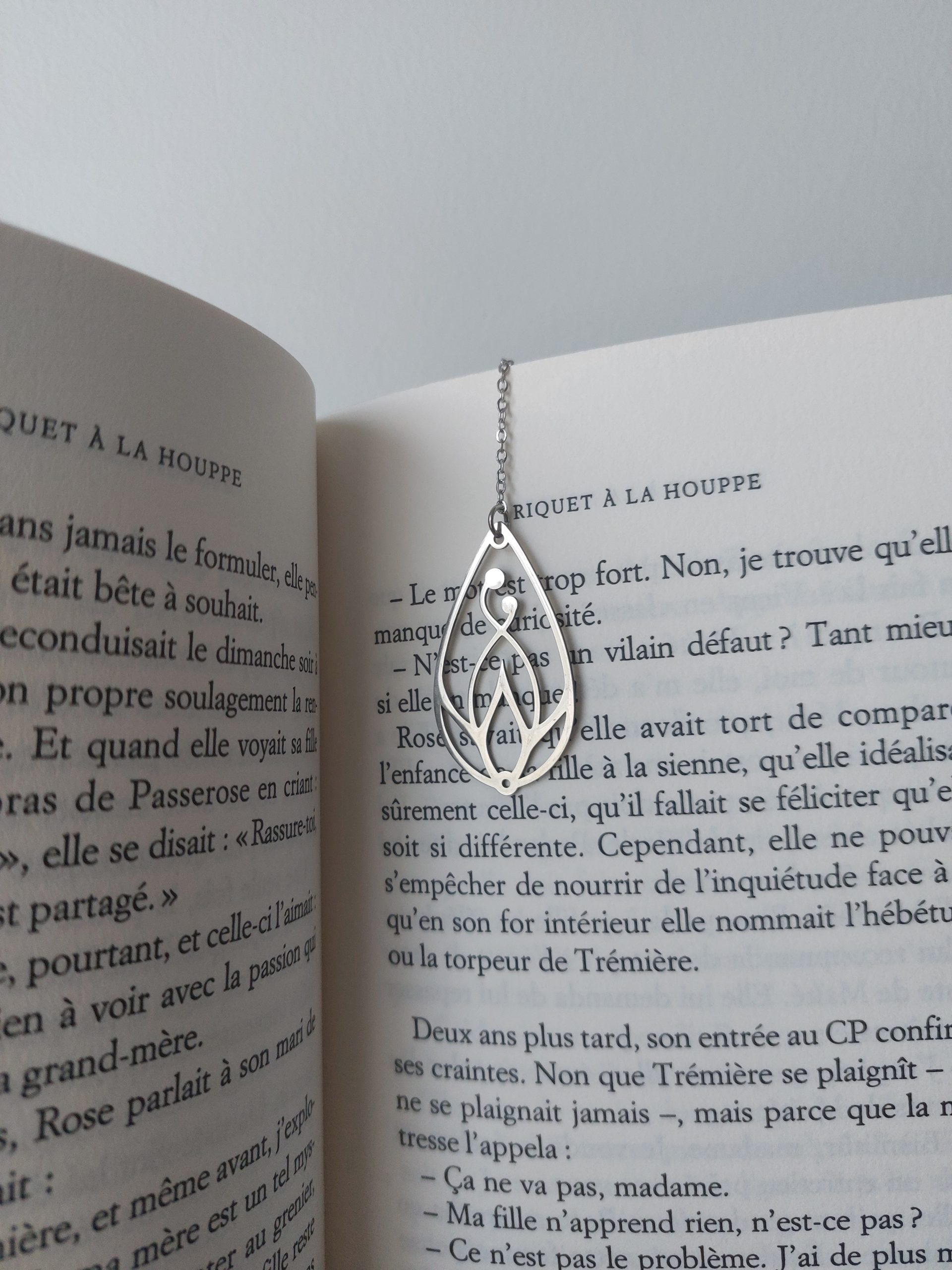 Confectionné en acier inoxydable pour le motif et la chaîne, ce marque-page bijou est aussi résistant que délicat. Très léger, il est facile à ranger et à utiliser. Avec ses 15 cm de long environ (suivant les modèles), il conviendra aussi bien à un livre de poche qu’à un livre grand format.