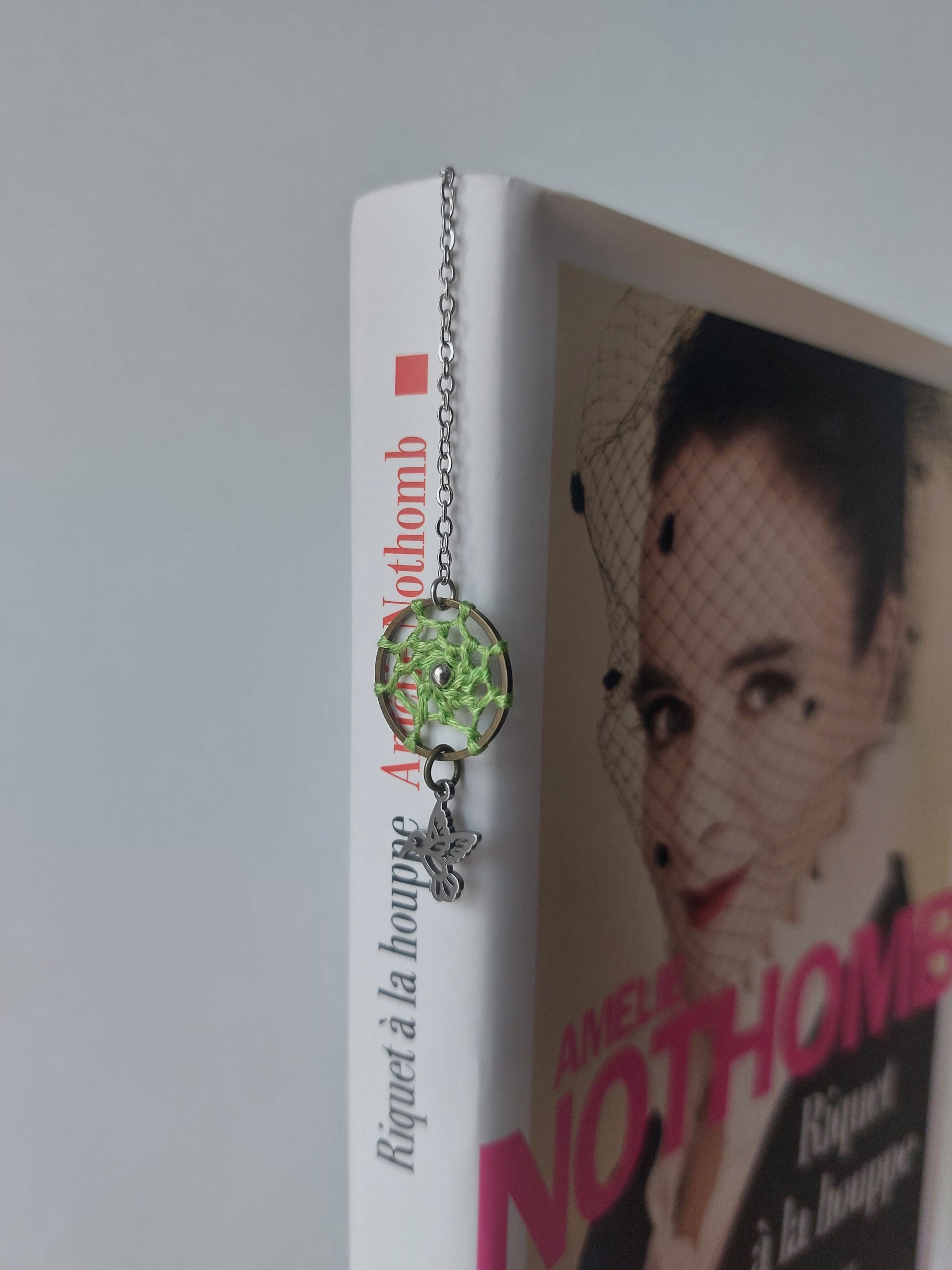 Vous ne risquez pas de le retrouver ailleurs celui-là ! Pensé et conçu par Lydie de Créalyd, ce beau marque-page bijou tout en délicatesse est orné d’un mini attrape-rêve réalisé à la main par ses soins.