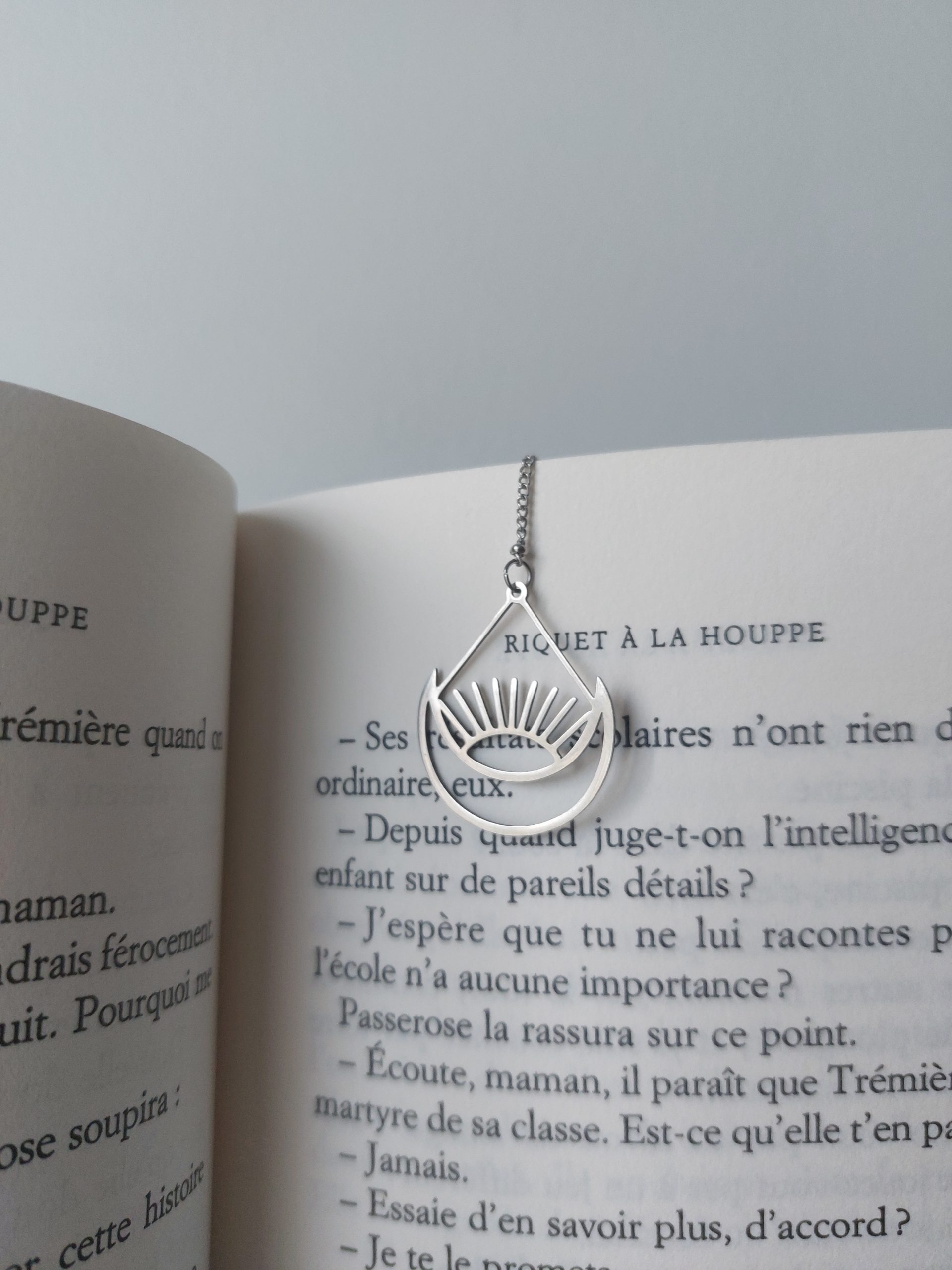 Confectionné en acier inoxydable pour le motif et la chaîne, ce marque-page bijou est aussi résistant que délicat. Très léger, il est facile à ranger et à utiliser. Avec ses 15 cm de long environ (suivant les modèles), il conviendra aussi bien à un livre de poche qu’à un livre grand format.