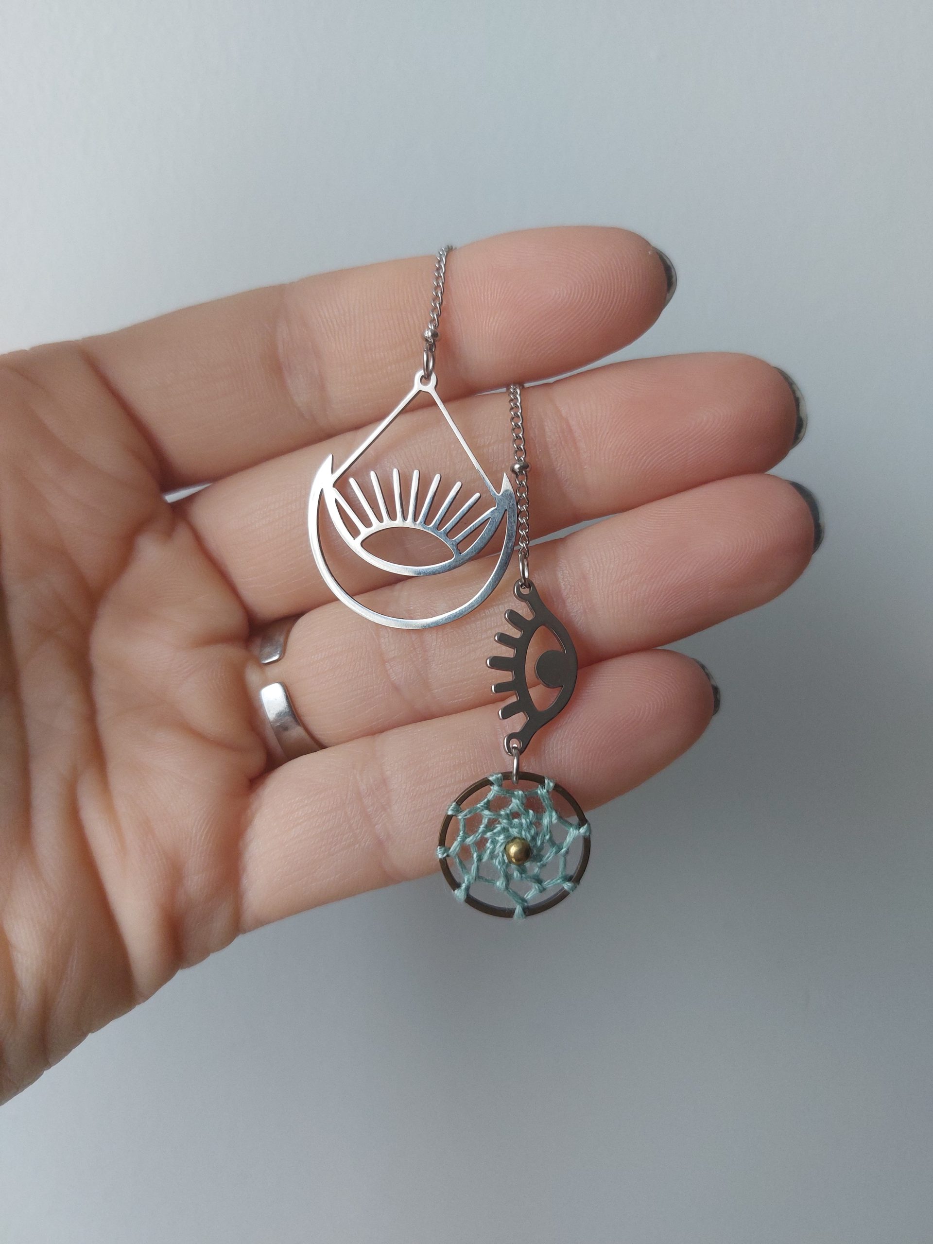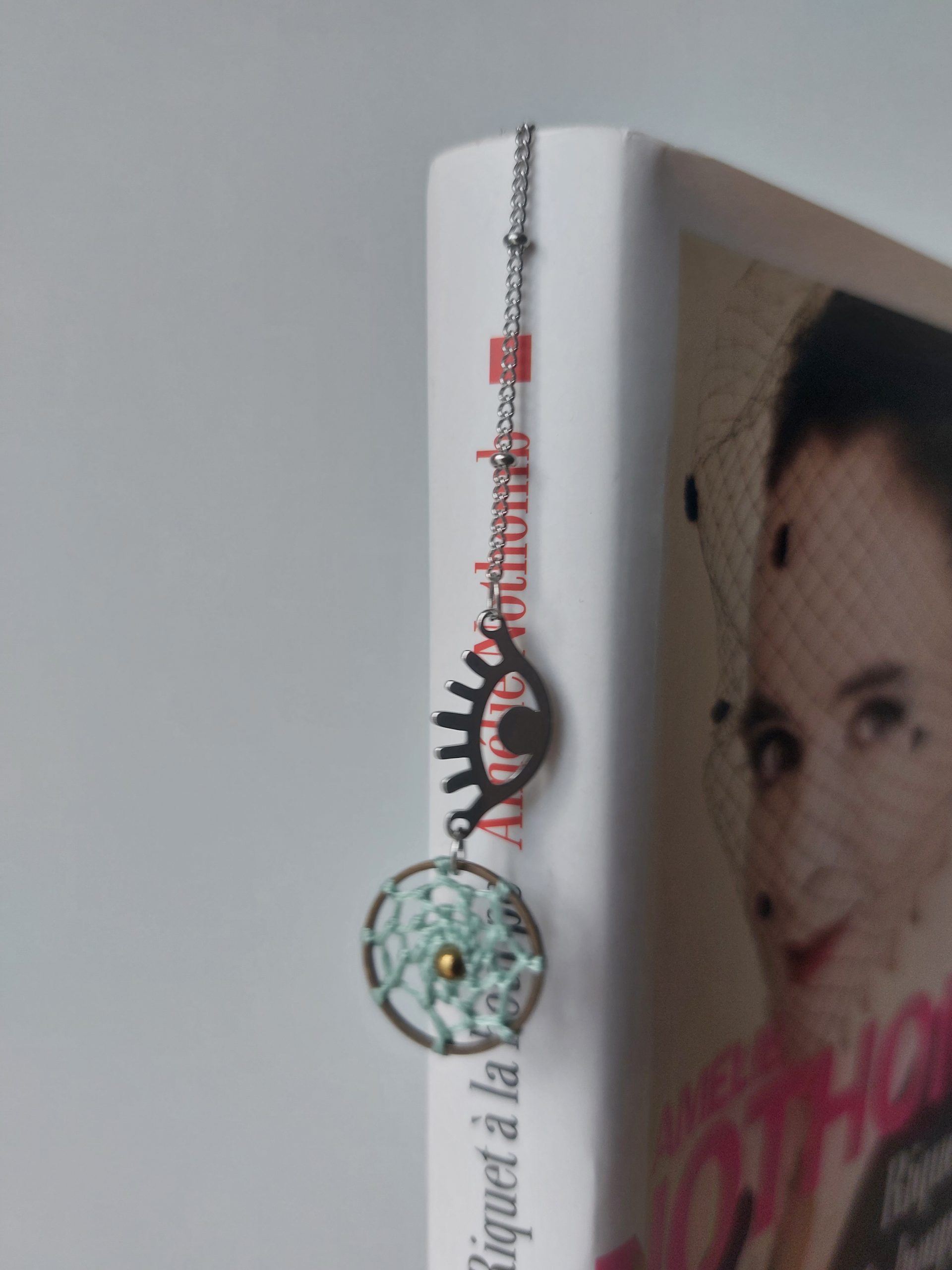 Vous ne risquez pas de le retrouver ailleurs celui-là ! Pensé et conçu par Lydie de Créalyd, ce beau marque-page bijou tout en délicatesse est orné d’un mini attrape-rêve réalisé à la main par ses soins.
