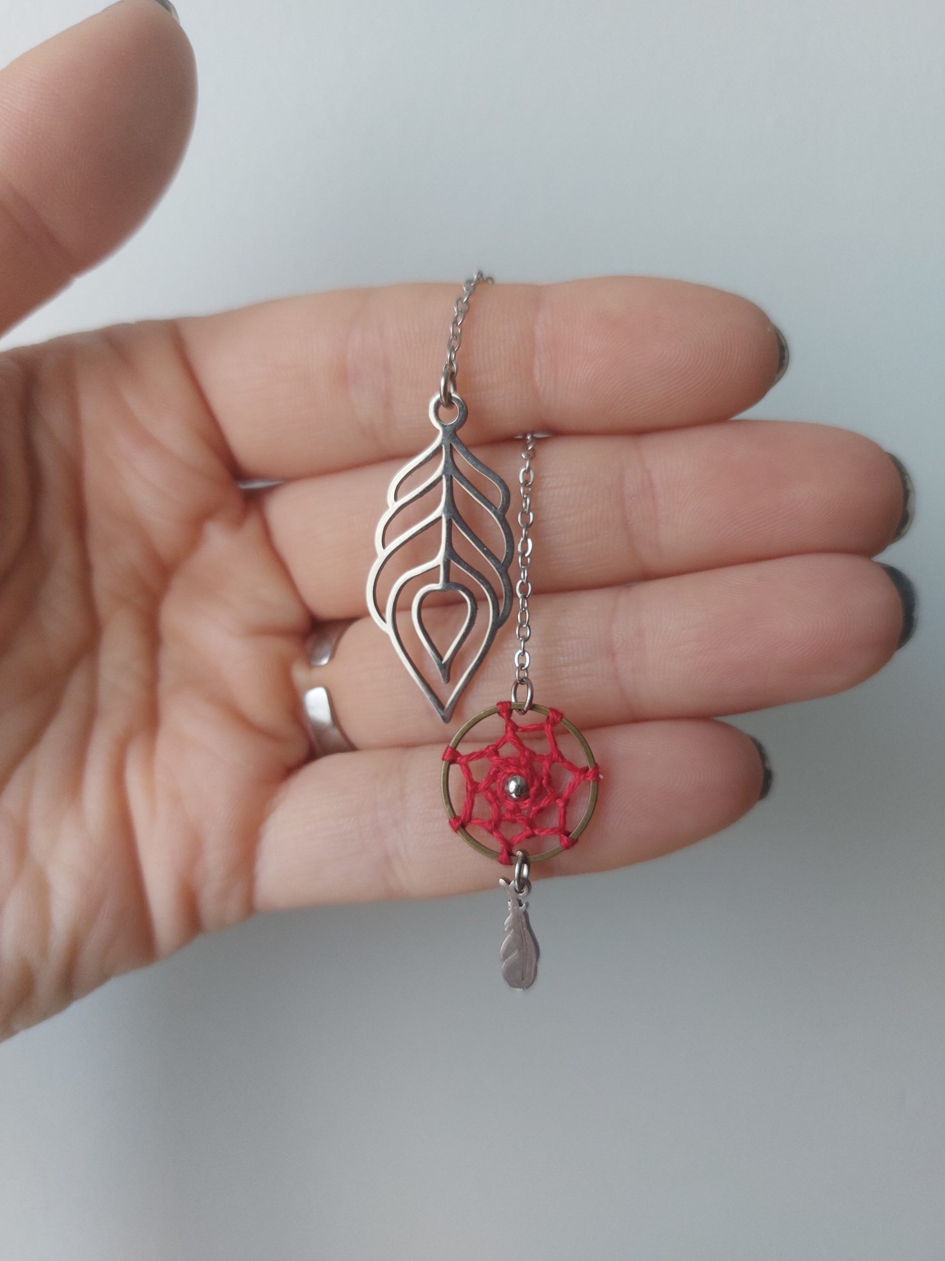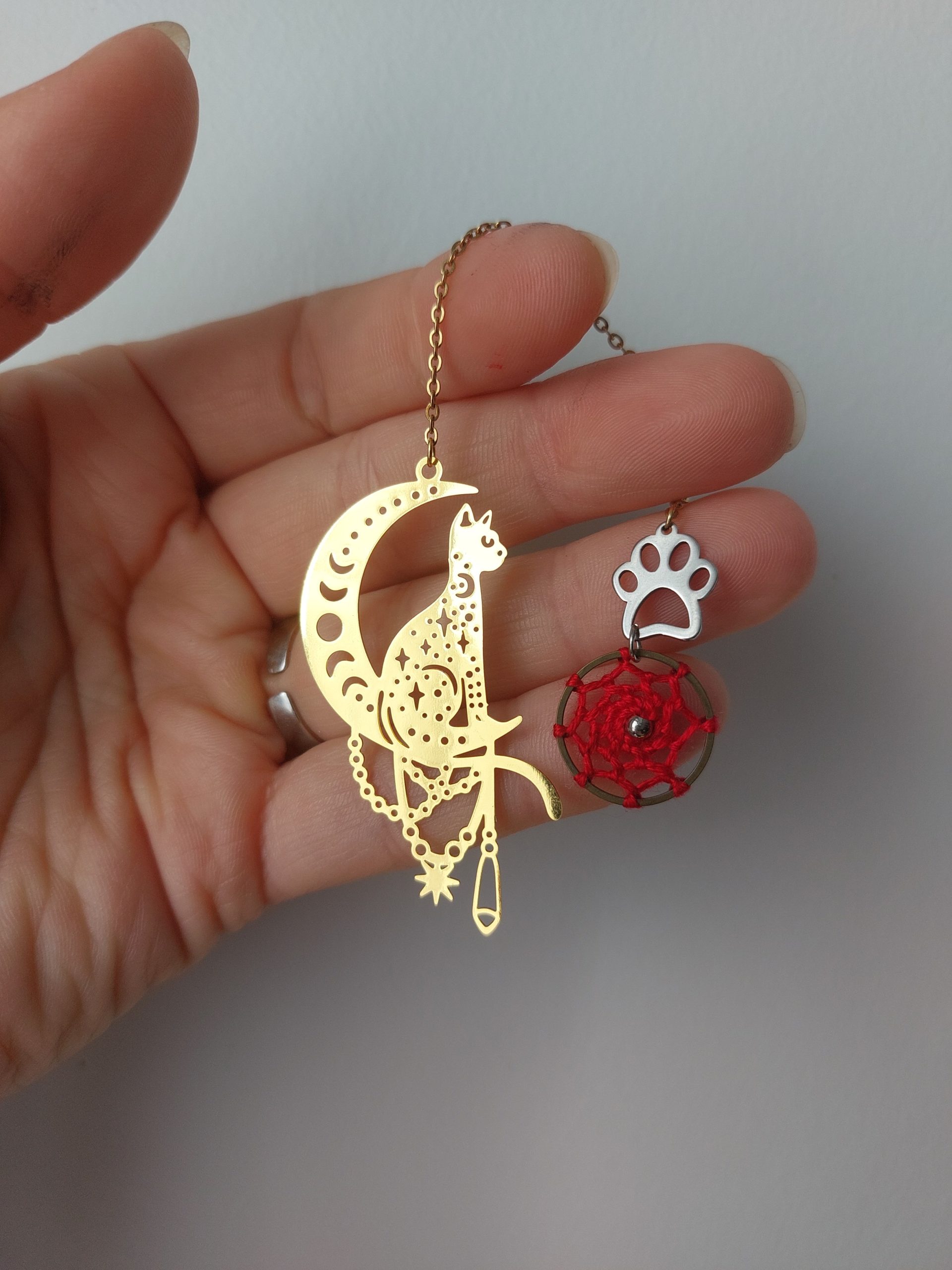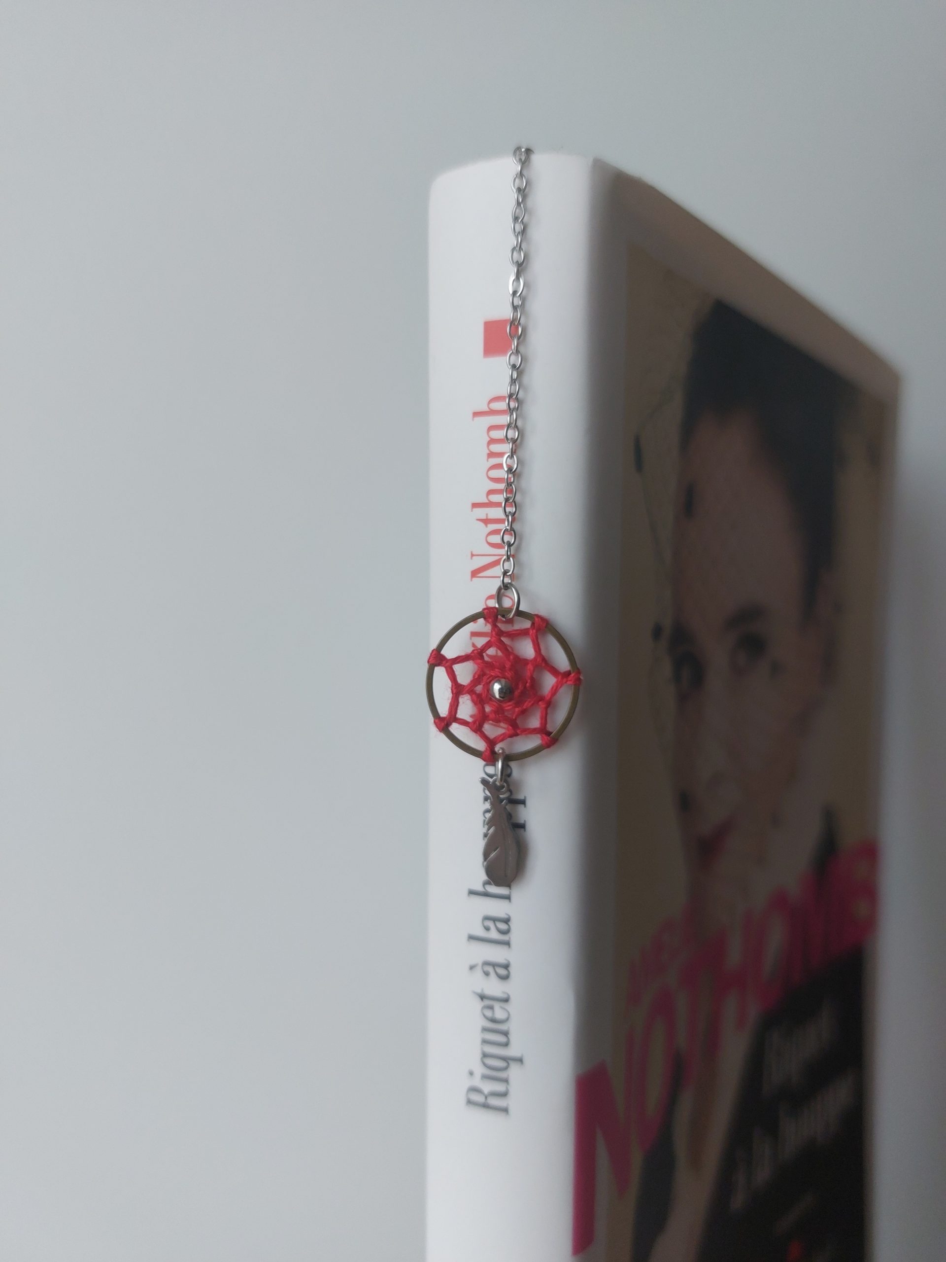 Vous ne risquez pas de le retrouver ailleurs celui-là ! Pensé et conçu par Lydie de Créalyd, ce beau marque-page bijou tout en délicatesse est orné d’un mini attrape-rêve réalisé à la main par ses soins.
