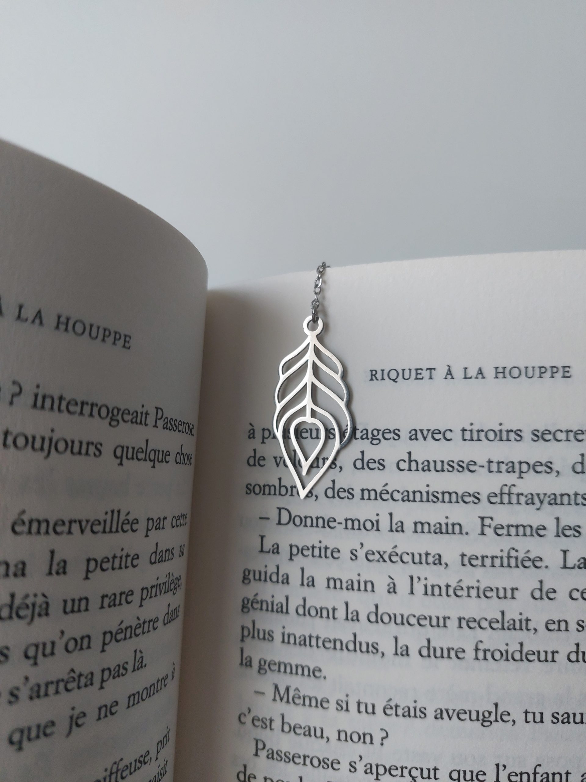 Confectionné en acier inoxydable pour le motif et la chaîne, ce marque-page bijou est aussi résistant que délicat. Très léger, il est facile à ranger et à utiliser. Avec ses 15 cm de long environ (suivant les modèles), il conviendra aussi bien à un livre de poche qu’à un livre grand format.